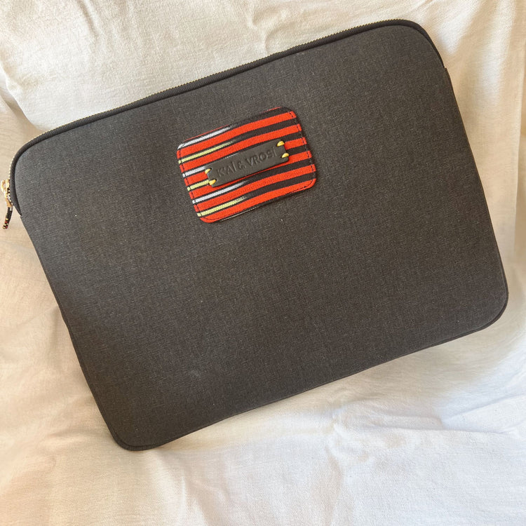 Zipped, Patterned, Black Canvas Laptop Case for 13" 14"