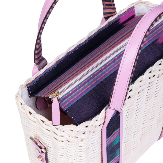 Woven Straw Handbag with Pink Leather Trimmed Handles